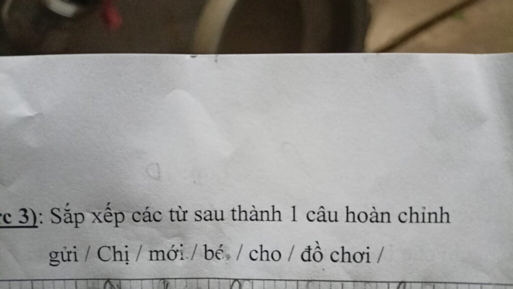 Cụ thể, bài tập số 3 là sắp xếp các từ sau thành 1 câu hoàn chỉnh: gửi/Chị/mới/bé/cho/đồ/chơi.