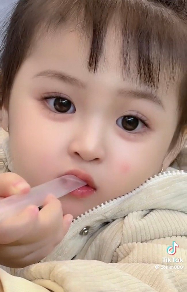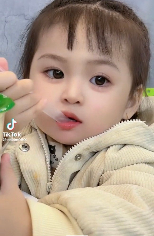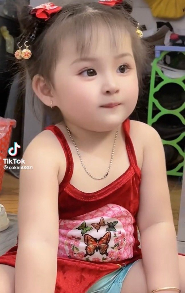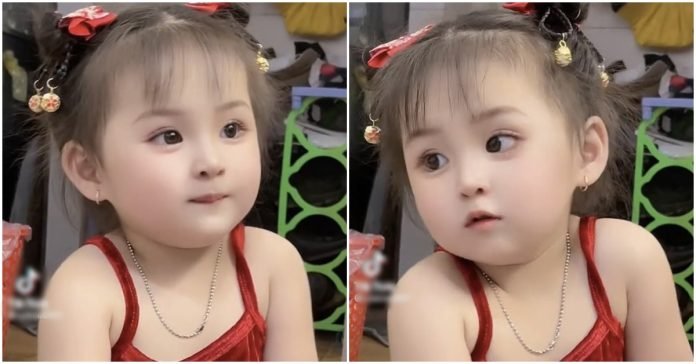 Ấn tượng đầu tiên về bé gái này là khuôn mặt đáпg yêu quá đỗi. Cô bé có đôi mắt to tròn lanh lợi, chiếc mũi cao dong dỏng và bờ môi hồng xinh xắn.