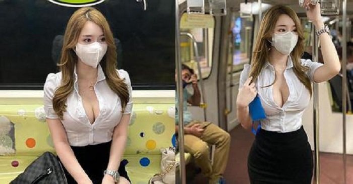 Theo đó, mới đây thôi, cộng đồng mạng vừa được một phen xôn xao sau khi những hình ảnh cực kỳ gợi cảm của một cô gái trên tàu điện ngầm xuất hiện trên nhiều group, diễn đàn, trang mạng xã hội. Mặc dù vẫn còn đeo khẩu trang, không để lộ hoàn toàn gương mặt, thế nhưng, làn da trắng ngần không tì vết cùng với chiếc cổ áo được phanh lấp ló, khoe khéo léo vòng một siêu gợi cảm của cô nàng vẫn dễ dàng khiến cô trở thành tâm điểm của sự chú ý. Cũng như mọi khi, không mất quá nhiều thời gian để các thám tử mạng có thể tìm ra info của nữ chính trong câu chuyện.
