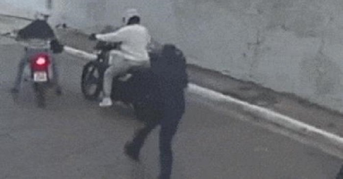 Bị tên cướp mặt áo trắng đe dọa, người đàn ông đành phải xuống khỏi xe. Tuy nhiên, nhân lúc đối phương chuẩn bị tăng ga lái đi, chủ nhân chiếc Royal Enfield liền lao tới xô đổ xe và bỏ chạy ra xa. Khi tên cướp dựng xe, chuẩn bị lái đi thì người đàn ông lại tiếp tục xô đổ.