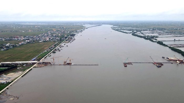 Dự án cầu vượt sông Hồng nối huyện Giao Thủy (Nam Định) và Tiền Hải (Thái Bình) trị giá gần 1.000 tỷ đồng nằm trên tuyến đường ven biển từ Nam Định đi Thái Bình đã hoàn thành 80%.