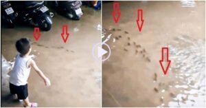 Ảnh chụp màn hình clip. Sau mưa cả nhà tròn mắt khi thấy đàn cá [...]