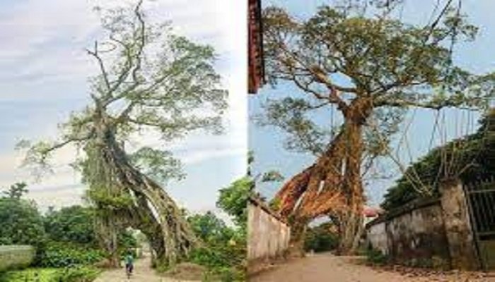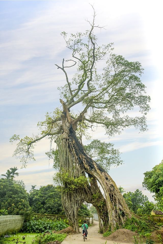 Những ngày vừa qua, trên một nhóm Facebook có hơn 800 nghìn thành viên, người dùng có nickname Ngọc Thiện đã đăng tải một bức ảnh chụp cây đa với dáng đứng độc đáo. Kèm với bức ảnh, Ngọc Thiện viết: “Xin chia sẻ với các cụ một trong những cổng làng độc nhất vô nhị ở Việt Nam”.