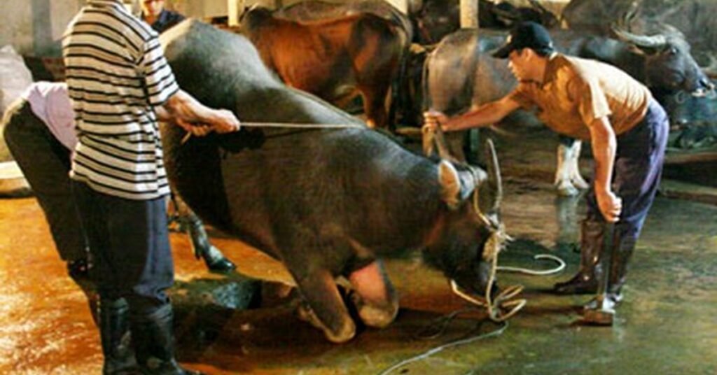 Kỳ 1:Chuyện kinh dị ở làng giết mổ gia súc Con trâu là vật nuôi gắn bó với người nông dân Việt Nam từ hàng ngàn năm trước, nó là đầu cơ nghiệp, là biểu tượng của nền văn minh lúa nước, vì thế, người ta tin, nó có linh hồn.Ông thủ từ ngôi đền Giang Xá (Hoài Đức, Hà Nội) Hồ Xuân Đức nói rằng: “Con trâu là loài làm thật, ăn giả. Nó chỉ ăn cỏ, ăn rơm, mà làm ra lúa gạo, tiền của nuôi sống con người. Gia đình nào tốt bụng, còn lấy bao tải mặc cho nó, rồi căng bạt, đốt lửa sưởi ấm cho nó vào những ngày giá lạnh. Vậy mà con người nỡ giết nó, thì nặng nghiệp lắm!”.