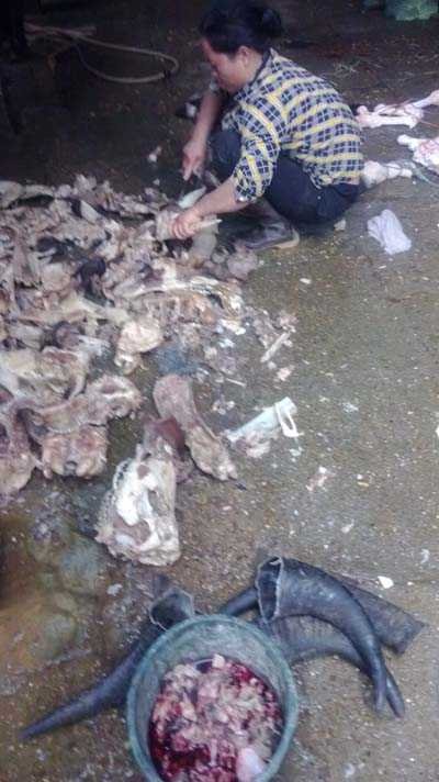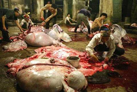 | Cảnh tượng ở làng mổ trâu Phúc Lâm. Ảnh Phạm Hải |
