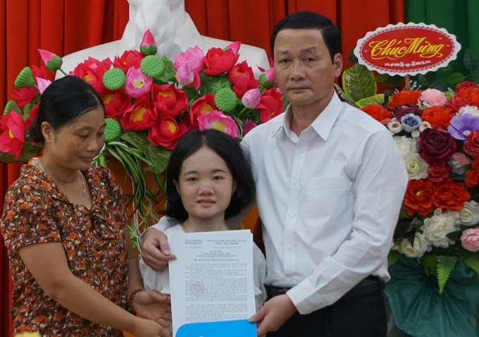 Chủ tịch UBND tỉnh Thanh Hóa Đỗ Minh Tuấn đã đến trường Tiểu học và Trung học cơ sở Đông Thịnh, huyện Đông Sơn, để trao quyết định cho Thắm. Trường này hiện có 700 học sinh với 35 giáo viên.