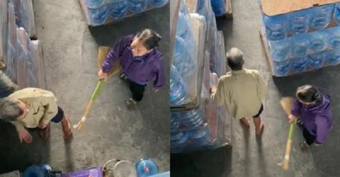 Trốn vợ ra ngoài hút thuốc lá, cụ ông bị cụ bà phát hiện và lĩnh trọn cái kết ‘đòn roi’.