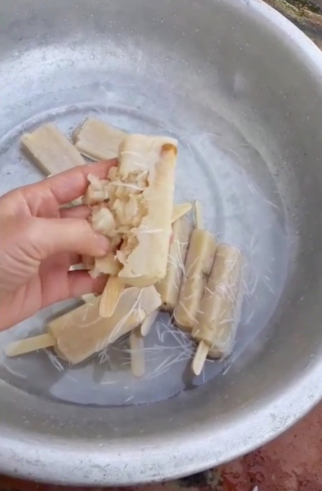 Đăng kèm lời tố là clip ghi lại mẻ kem dừa Nam Định, người quay bày ra chậu phơi ngoài trời, tự tay nghiền kem