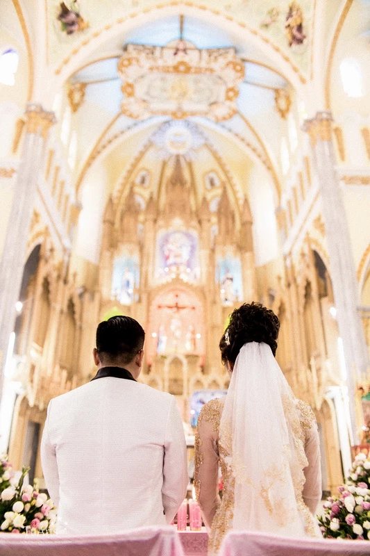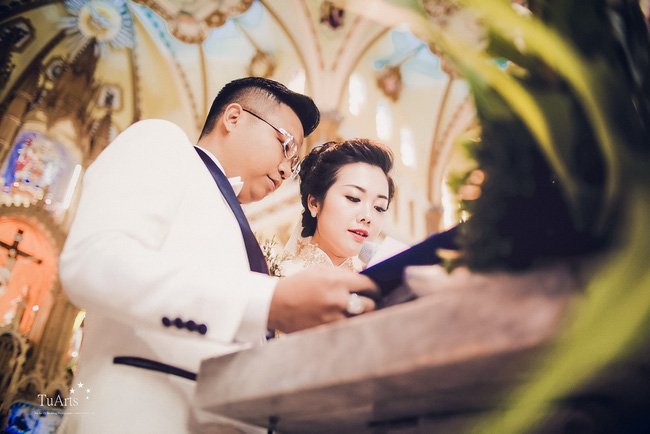 Đám cưới được tổ chức hoành tráng và lung linh ở một nhà thờ trong TP. HCM. Đây cũng là địa điểm đầu tiên tổ chức đám cưới của cặp đôi này