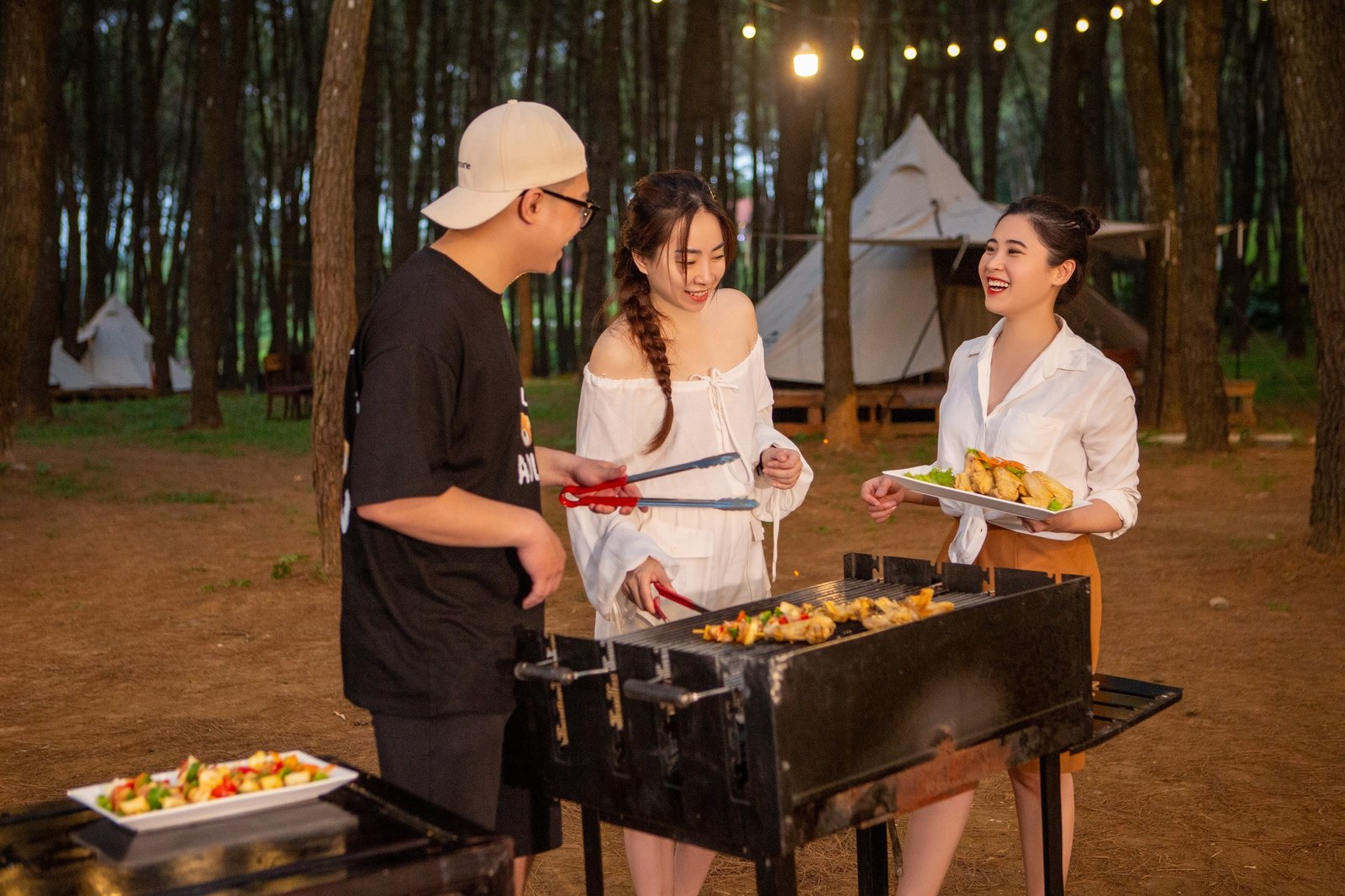Tới khu cắm trại này, du khách có thể mang theo lều trại hoặc thuê dịch vụ lều trại, đặt đồ ăn, tiệc nướng ngoài trời… theo nhu cầu. Kề cận khu lều trại cũng có các bungalow gỗ thông, khách sạn ba sao, villa để phục vụ du khách đi theo nhóm hay gia đình.