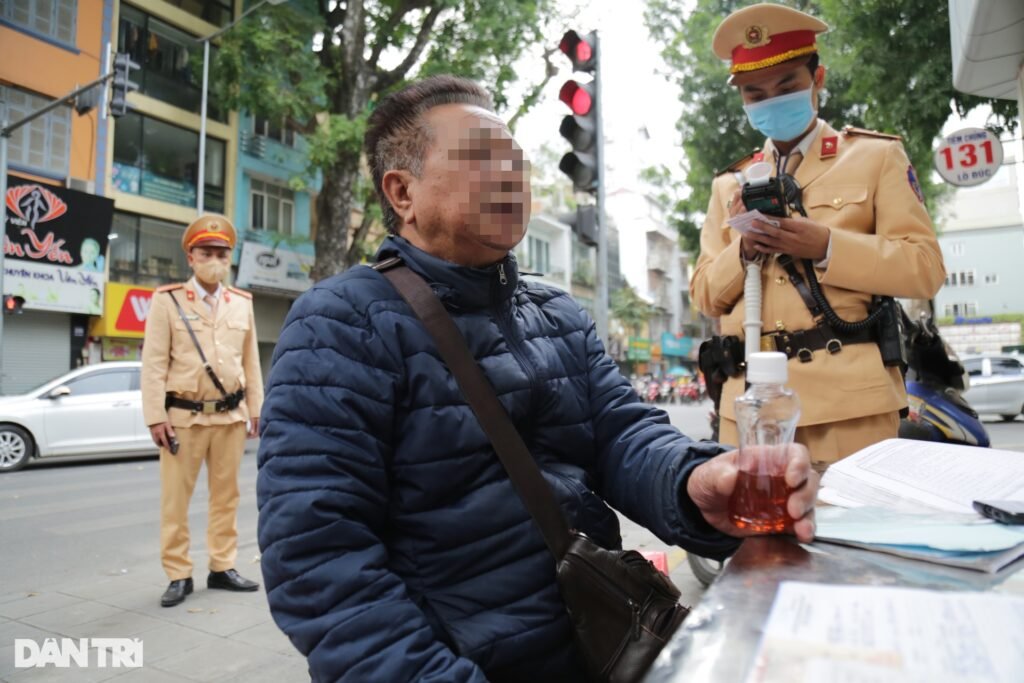 Tới khoảng 14h54, tổ công tác phát hiện tài xế L.Q.H. (SN 1970, ở Hà Nội) điều khiển xe máy BKS 30F4-67.xx có dấu hiệu khả nghi nên yêu cầu tài xế dừng xe kiểm tra. Qua kiểm tra nồng độ cồn, tài xế H. vi phạm ở mức 0,252mg/lít khí thở.