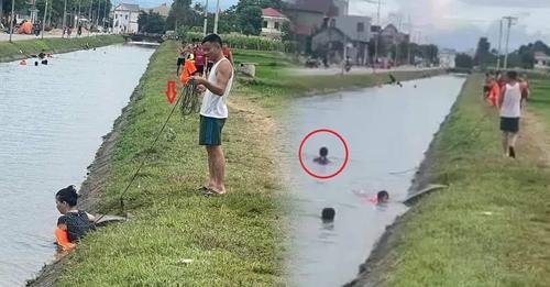 Mới đây, những hình ảnh ghi lại cảnh người chồng đưa vợ ra một con kênh nhỏ tập bơi thu hút sự chú ý của nhiều người. Đáng chú ý, người chồng mang theo một cuộn dây rất dài. Anh đứng trên bờ và buộc cuộn dây này ngang người vợ. Sau khi đã được chồng cố định chắc chắn, chị vợ mới an tâm di chuyển xuống nước.