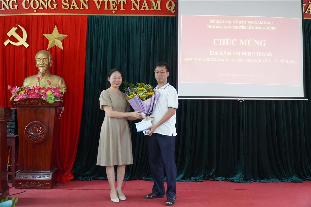 Tấm huy chương vàng Olympic Quốc tế môn Hóa học của cô gái nhỏ nhắn Đàm Thị Minh Trang là kết quả xứng đáng cho những nỗ lực say mê không mệt mỏi của bản thân em, của thầy trò nhà trường. Đó là món quà tri ân vô cùng ý nghĩa với nhà trường và càng ý nghĩa hơn nhân sự kiện 100 năm thành lập trường, 60 năm trường mang tên tổng bí thư Lê Hồng Phong.