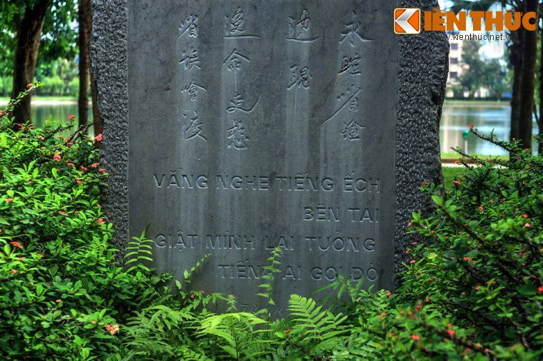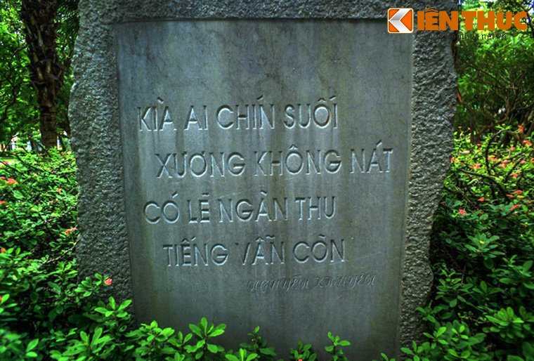 Liền kề là tấm bia đá, với cả hai mặt bia đều có khắc thơ.
