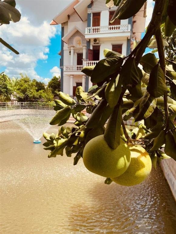 Bao quanh căn nhà 3 tầng là hệ thống sân vườn, ao cá tựa như khu du lịch sinh thái. |