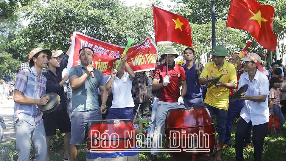 Các cổ động viên cổ vũ nhiệt tình cho các đội bơi chải. Ảnh: Việt Thắng