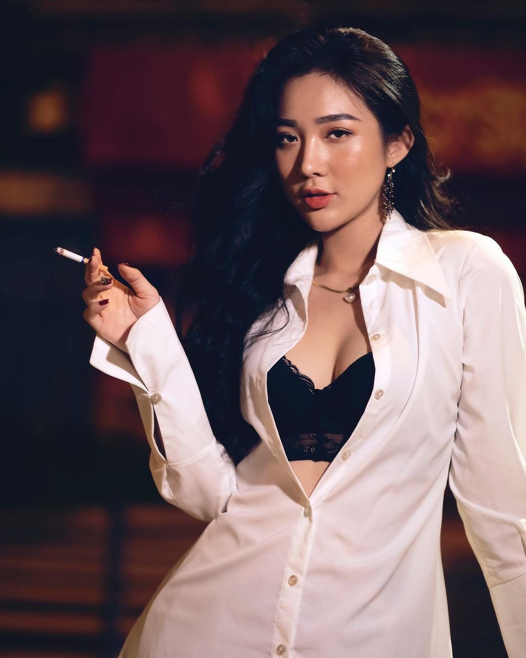 Quả thật ngắm loạt hình của Huyền Trân, người ta không thể không xuýt xoa vì cô nàng xinh đẹp quá mà. Không chỉ sở hữu nhan sắc nổi bật, Huyền Trân còn “đốn tim” người đối diện bởi nụ cười tươi rói cùng má lúm duyên duyên. Bình thường theo đuổi phong cách “bánh bèo”, trông cô nàng siêu cấp nữ tính. Ấy vậy mà khi ăn diện táo bạo một chút, Huyền Trân lại làm người ta ngẩn ngơ vì quá sexy.