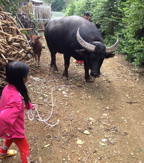 Chú trâu đực luôn thân thiện, các con anh vẫn thường dắt đi rất dễ dàng.