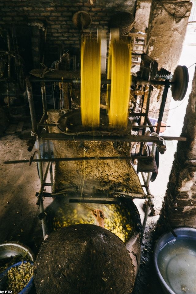 Khắp mọi nơi trong làng, bạn sẽ dễ dàng bắt gặp hình ảnh những người phụ nữ miệt mài luộc kén, kéo tơ trong các xưởng tại gia