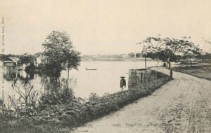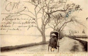 Lúc đó, Hà Nội chỉ có 2 con đường để dạo mát bằng xe ngựa là Đường Thành (Digue Parreau, nay là Hoàng Hoa Thám) và đường Cổ Ngư. Sau thế chiến thứ nhất, Hà Nội bắt đầu có nhiều xe ô tô cá nhân, khi chiều hè oi bức, người Tây đưa nhau đi xe đến Cổ Ngư hóng gió hồ, xe đỗ dọc đường làm cản trở giao thông, vì vậy chính quyền cho đắp rộng quãng ngang của chùa Trấn Quốc để làm chỗ dừng ô tô. Chỗ đó sau này mở ra một hàng giải khát, có món bánh tôm được nhiều người ưa thích, vì tôm tươi mới bắt được ở hồ lên được làm bánh ngay.