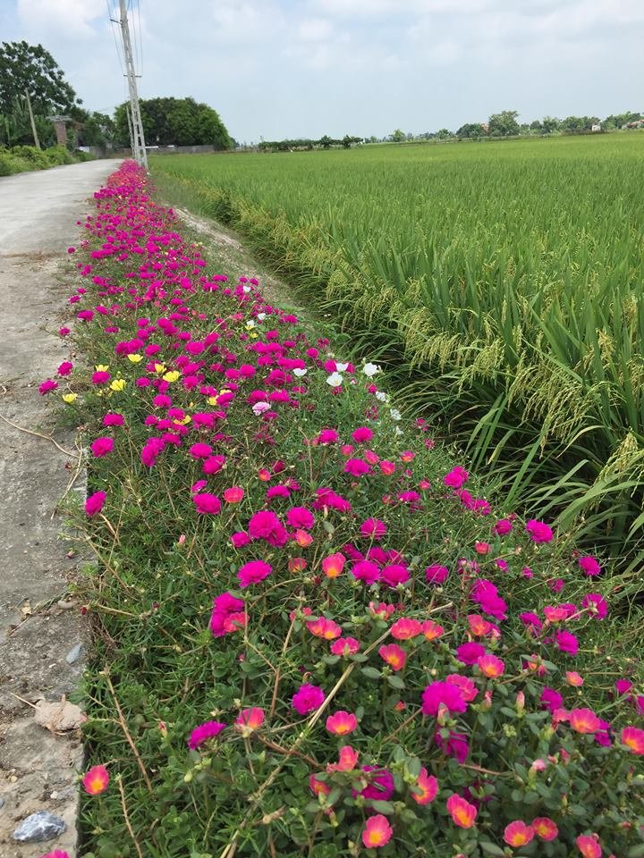 Không chỉ hoa chiều tím, những loài hoa vốn trước chỉ giản dị ở góc vườn như: hoa mười giờ, hoa sam, hoa dừa cạn… nay đã được đưa ra đường làng ngõ xóm để khoe sắc, tỏa hương.