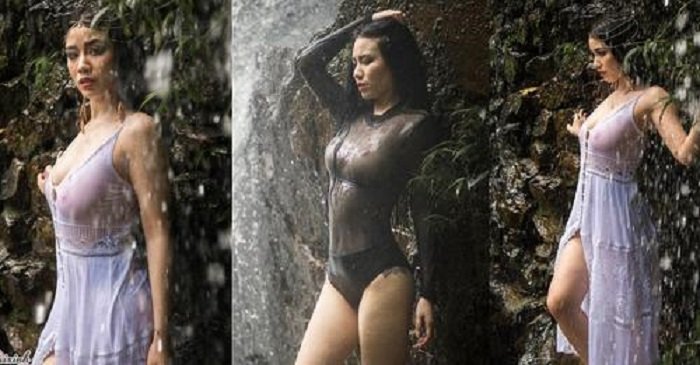 Linh Miu diện váy mỏng ướt tắm suối khiến nhiều anh mắt chữ A miệng chữ O