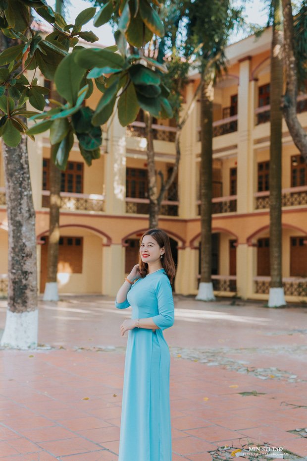 Nữ sinh lớp 12H duyên dáng trong tà áo dài nhân ngày khai giảng.