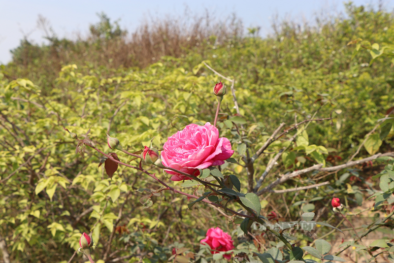 Được người dân chăm sóc chu đáo, những cây hoa mẫu đơn thi nhau nở rộ trên mái đê.