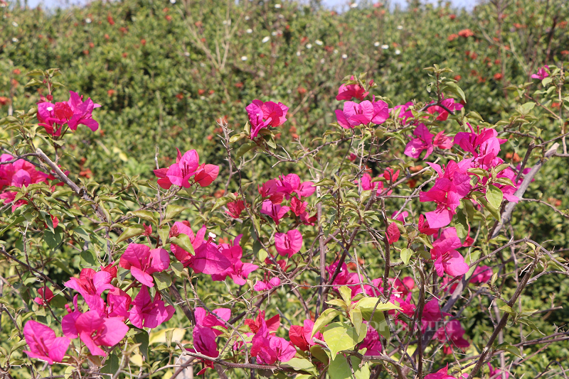 Cây hoa giấy nở rực trên triền đê kiểu mẫu ở Điền Xá.