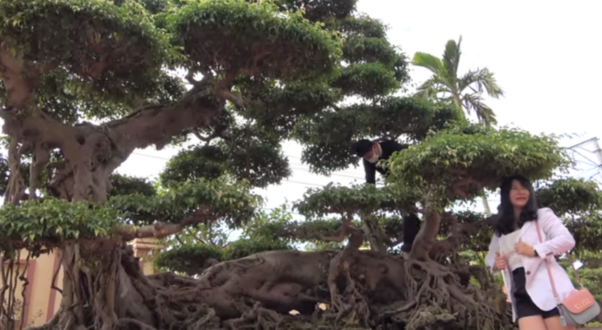 Trong video giới thiệu, cây ѕɑɴɦ ɡɪɑ̀ có kích thước “ƙɦὑɴɡ”, ước tính chiều cao trên 3m, thân rộng đủ chỗ cho nhiều người ngồi, tán cây được cắt tỉa đẹp mắt.