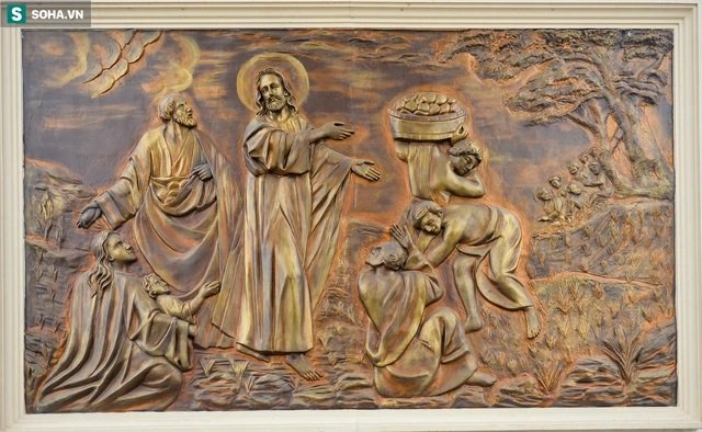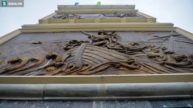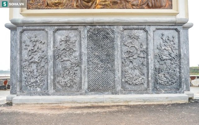 Có tất cả 16 bức phù điêu được chia bố cục đều 4 mặt của cổng.