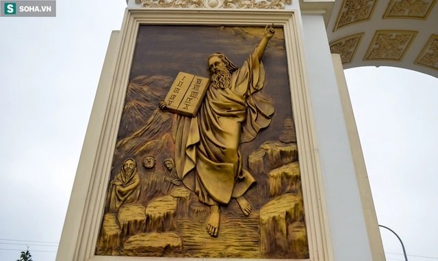Hai trụ cổng được chạm khắc các bức phù điêu khắc họa một số câu chuyện trong Kinh Thánh của người Công giáo.