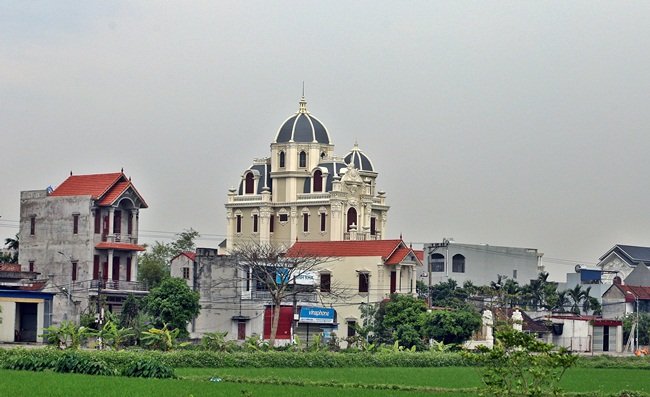 Đây là một xã ở nông thôn nhưng không hiếm những ngôi nhà cao tầng, đồ sộ minh chứng cho sự phát triển kinh tế và người dân giàu có.