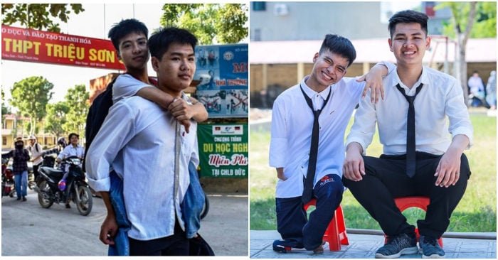 Câu chuyện đôi bạn cõng nhau thuần túy suốt 10 năm trời, rồi cùng nhau đỗ điểm cao đã đến trái tim nhiều người. Đó là 2 cậu học trò Nguyễn Tất Minh và Ngô Minh Hiếu đến từ xóm 1, xã Đồng Thắng, huyện Triệu Sơn, Thanh Hóa.