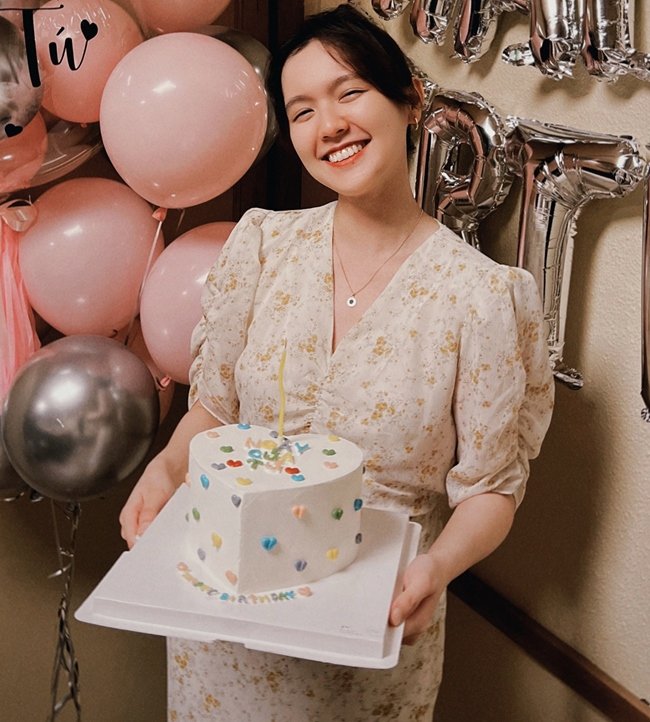 Hải Tú ăn mặc giản dị cùng bạn bè trong tiệc mừng sinh nhật tuổi 25.