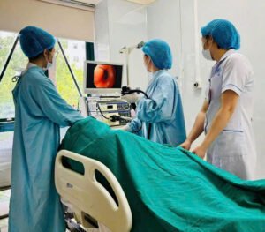 Tại Khoa Cấp cứu, ê-kíp hồi sức nhanh chóng truyền dịch, thở oxy và làm các xét nghiệm chẩn đoán, khám trực tràng cho người bệnh, nghi ngờ chảy máu tiêu hóa. Các bác sĩ hội chẩn và tiến hành nội soi dạ dày cấp cứu cho bệnh nhân.