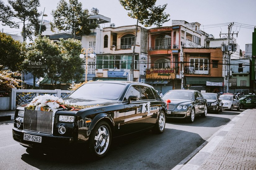 Điều làm nên sự đặc biệt của đám cưới bạc tỷ này là màn rước dâu bằng máy bay và các loại xe siêu sang được trang trí đẹp mắt khiến bất kì ai nhìn thấy đều phải trầm trồ, ngưỡng mộ.