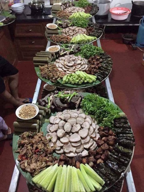 Mâm cỗ thịt lợn mán đủ món ở các tỉnh miền núi phía Bắc.