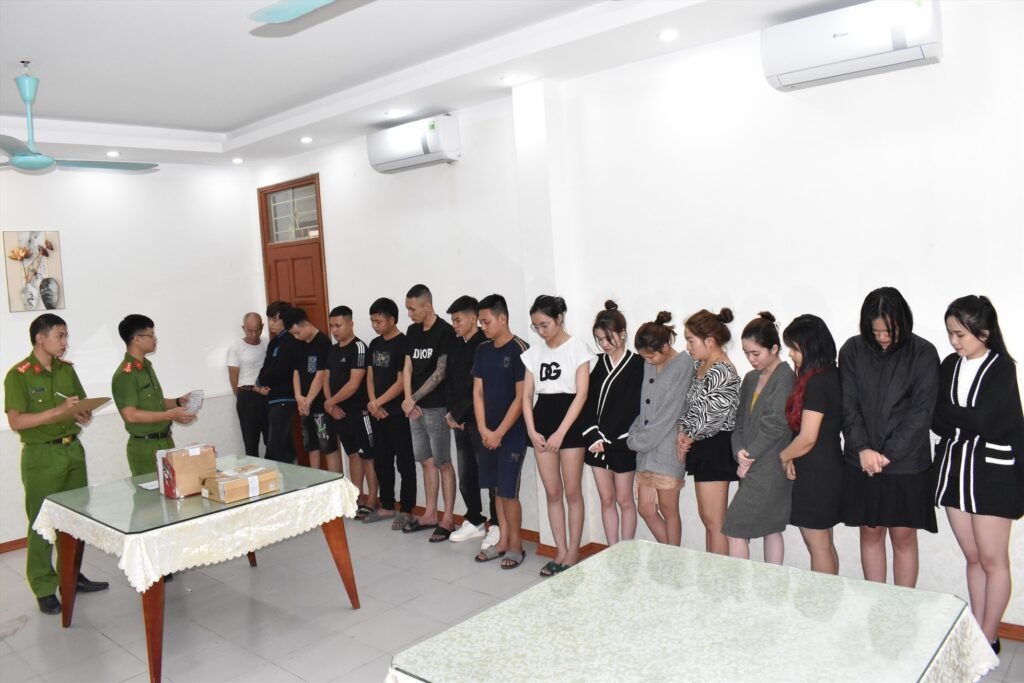 Quá trình kiểm tra, lực lượng chức năng phát hiện tại 2 phòng hát của quán này có 16 thanh niên (gồm 8 nam, 8 nữ) có hành vi sử dụng trái phép chất ma túy.