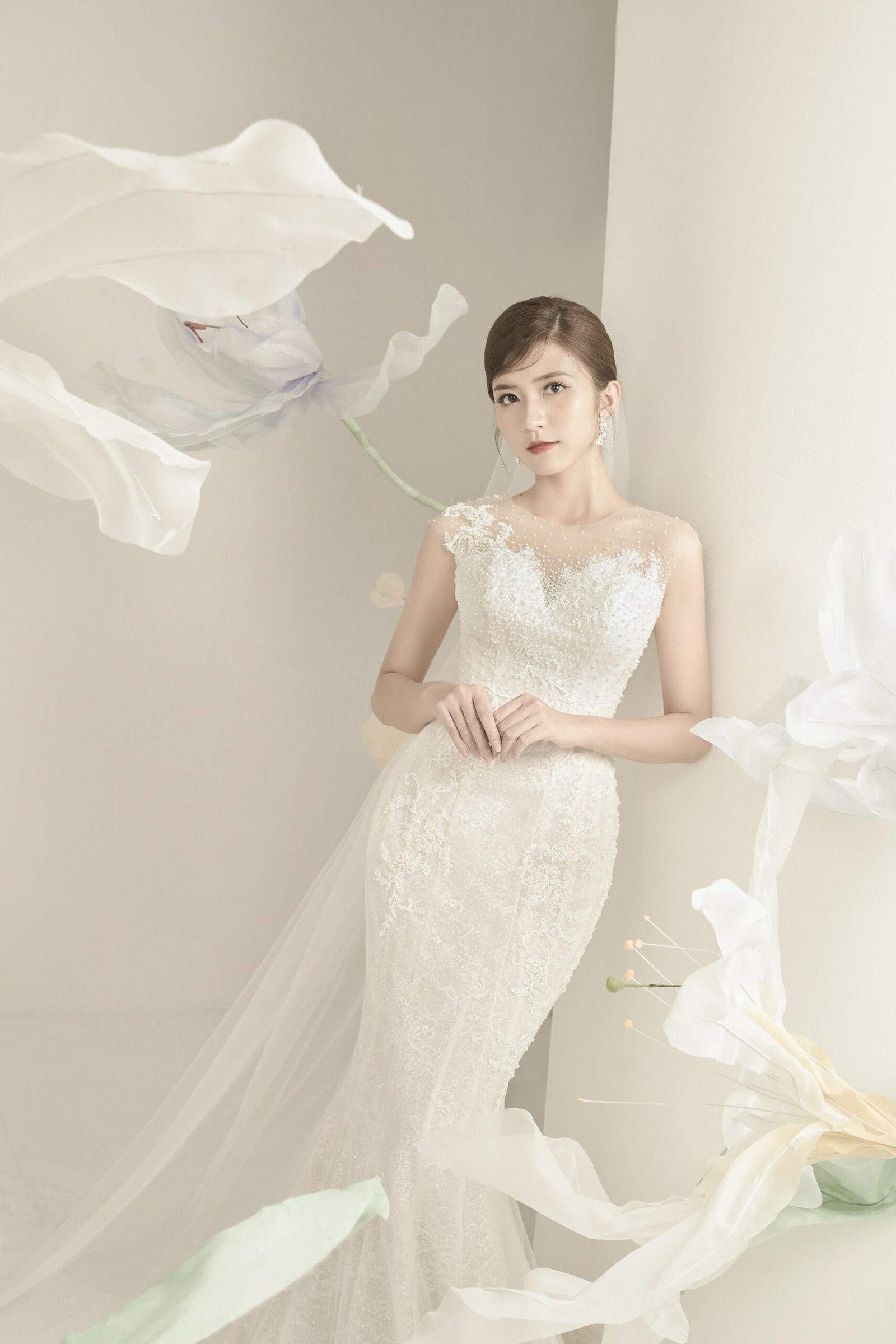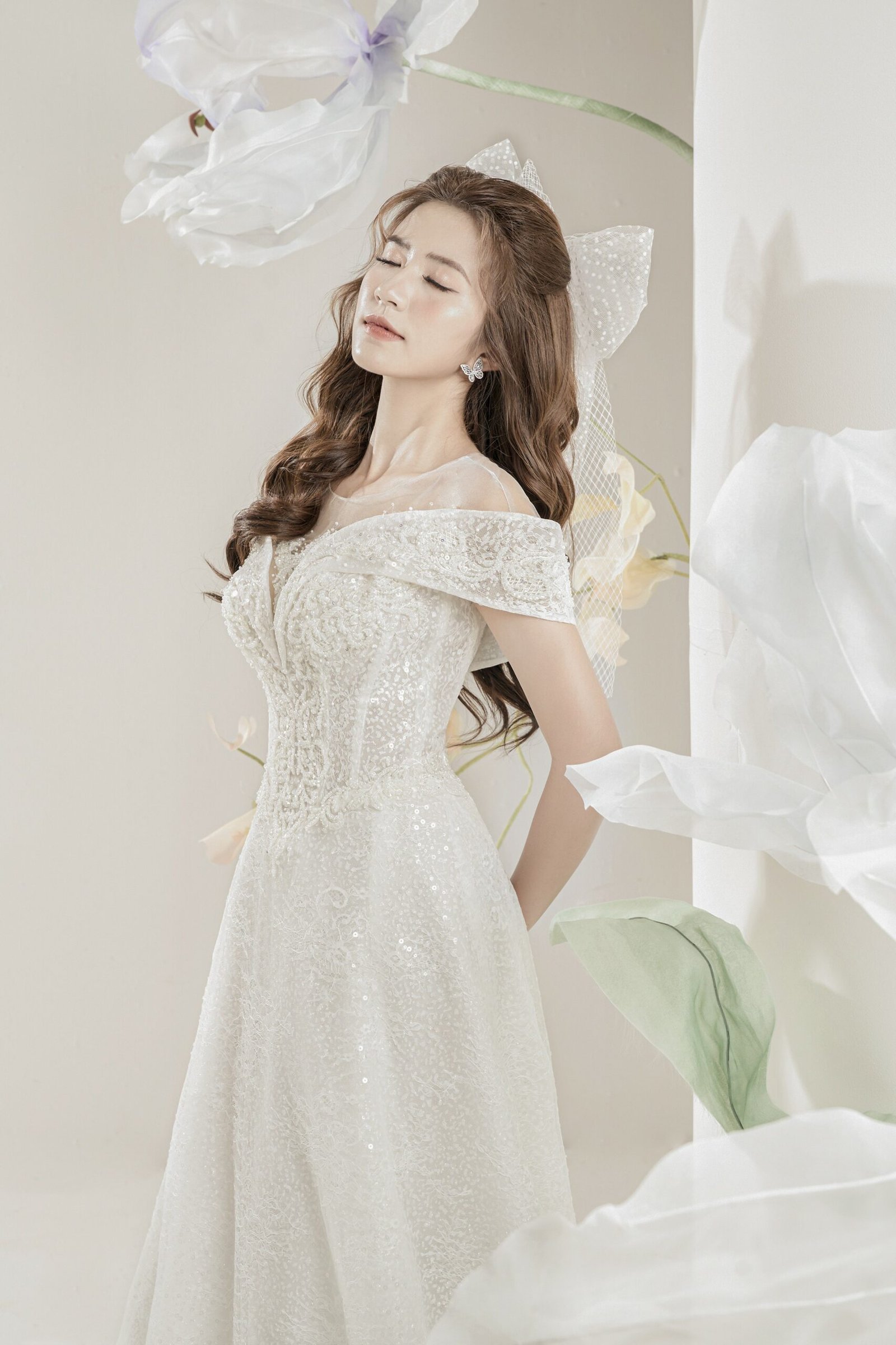 Ngọc Huyền với tạo hình cô dâu trong váy của NTK Quyên Nguyễn.
