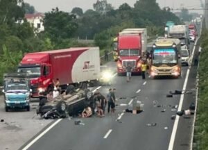 Ô tô biển xanh nổ lốp trên cao tốc Cầu Giẽ – Ninh Bình, 5 người thương vong