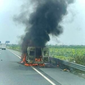 Ô tô khách 16 chỗ bốc cháy ngùn ngụt trên cao tốc Pháp Vân – Cầu Giẽ