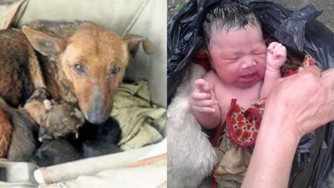 Chú chó hoang sưởi ấm và cứu mạng bé trai bị bỏ rơi mới một tháng tuổi ảnh 1