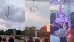 Ở độ cao 10m, cô dâu được chiếc cần cẩu đưa từ từ vào sân [...]