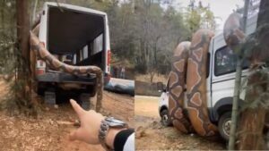 Chứng kiến cảnh con trăn khổng lồ đang quấn quanh chiếc ô tô như phim [...]