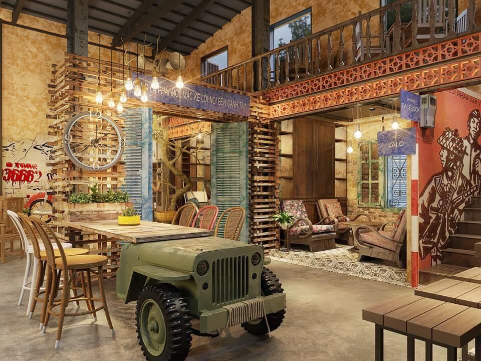 Cafe tại Nam Định có phong cách thiết kế hoài cổ, mang phong vị những ngày tháng chiến tranh. Có một nét nào đó ở nơi đây khá khiến ta liên tưởng tới Công Cà Phê.